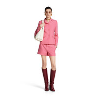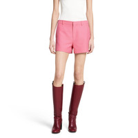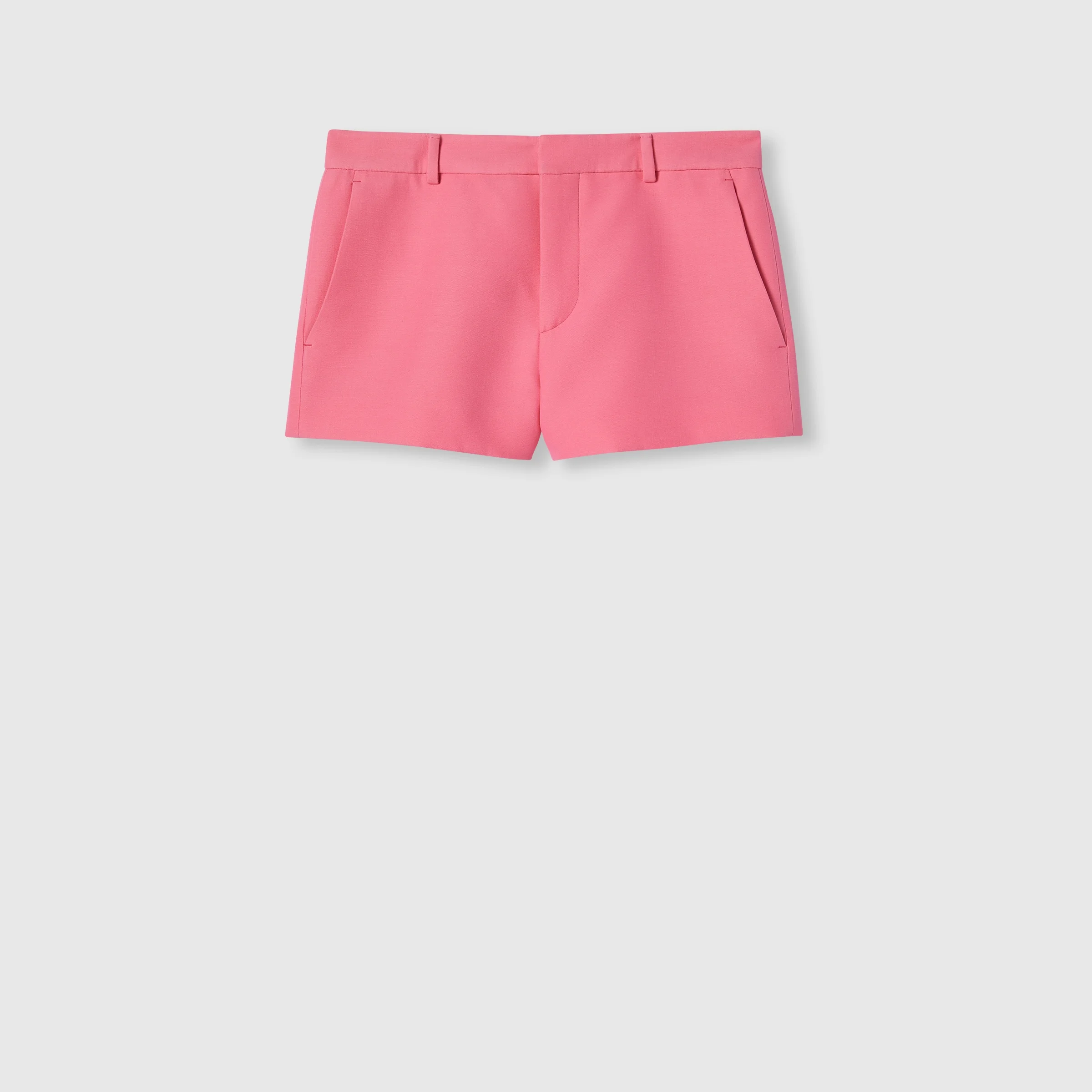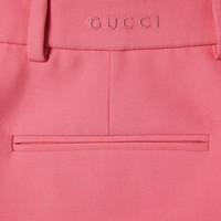 The Pre-fall 2025 collection introduces a new take on warm materials on sophisticated outerwear pieces, in traditional and contemporary silhouettes. This pair of wool shorts features an embossed Gucci logo. - Pink cady crepe wool silk - Embossed Gucci logo - Lined - Belt loops - Two side pockets - Two back pockets - Hook tab and zip closure - Made in Italy