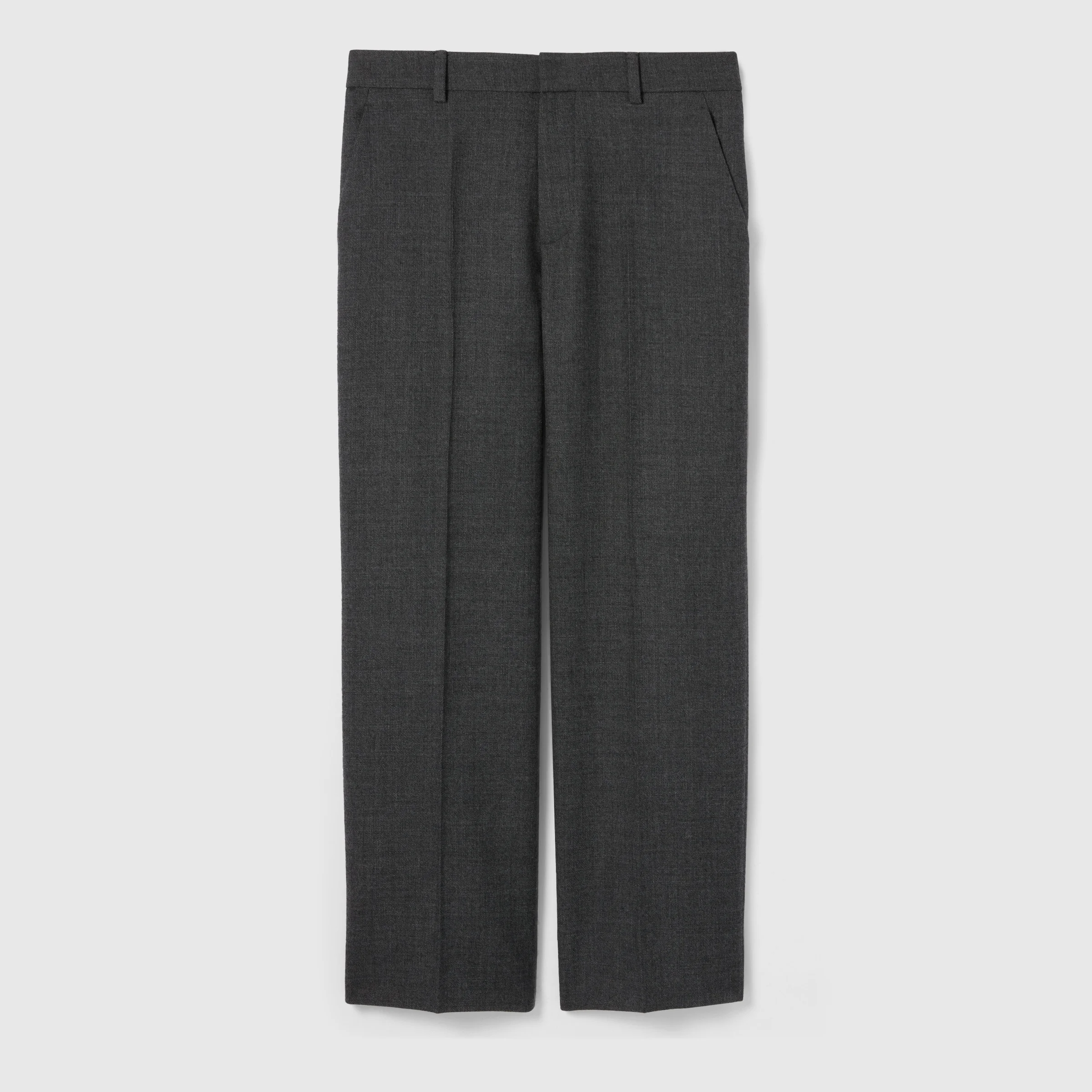 The Pre-fall 2025 collection introduces a new take on warm materials on sophisticated outerwear pieces, in traditional and contemporary silhouettes. This pair of pants is crafted from a wool grisaille and is complete with a Gucci embroidery. - Dark grey wool grisaille - Gucci embroidery - Unlined - Belt loops - Two side pockets - Two back pockets - Hook tab and zip closure - Tapered leg - Made in Italy