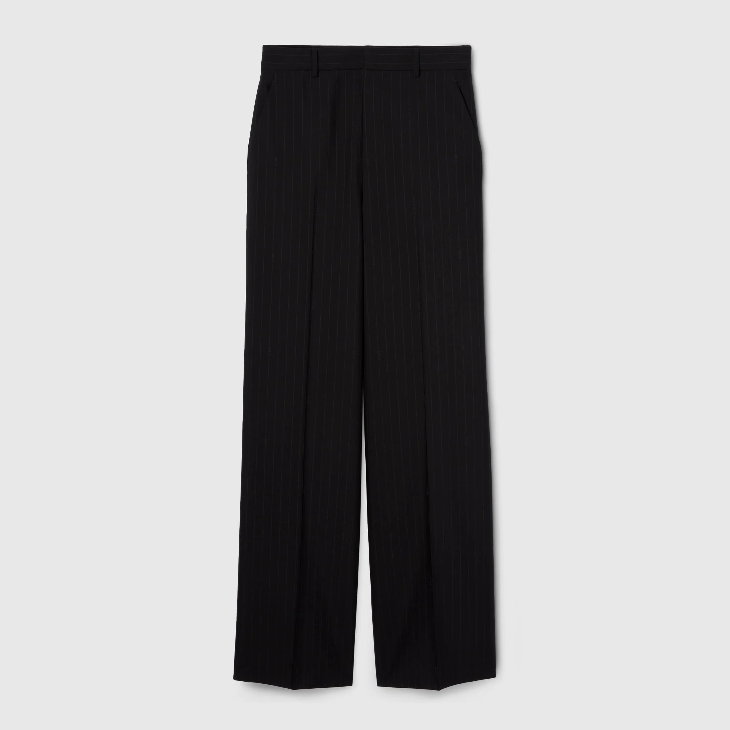 Sartorial silhouettes speak to the fine craftsmanship and sophisticated materials that have come to define Gucci's latest ready-to-wear. For Pre-Fall 2025 this classic pair of pants is crafted from a unique pinstripe Gucci wool jacquard. - Black pinstripe Gucci wool jacquard - Unlined - Belt loops - Two side pockets - Two back pockets - Hook tab and zip closure - Made in Italy
