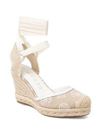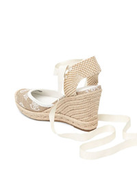 100mm Charmi wedge espadrilles Highlights - Beige - Logo-jacquard pattern - Ankle tie straps - Braided jute detailing - Wedge heel Imported Composition Outer: Fabric 100%, Calf Leather 100% Lining: Calf Leather 100%, Fabric 100% Sole: Rubber 100%