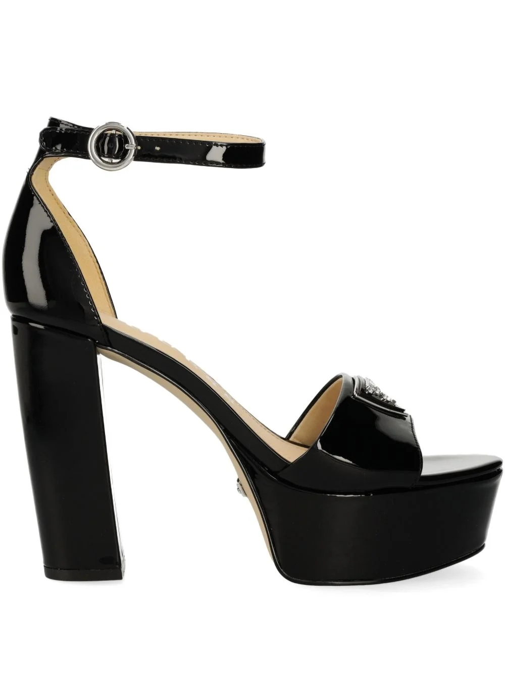 120mm leather sandals Highlights - Black - Buckle-fastening ankle strap - Round toe - Block heel - Branded insole Imported Composition Lining: Leather 100%, Polyurethane 100% Sole: Rubber 100% Outer: Patent Leather 100% SIZE & FIT Measurement HEEL 4.72 in(12 cm) PLATFORM 1.57 in(4 cm)
