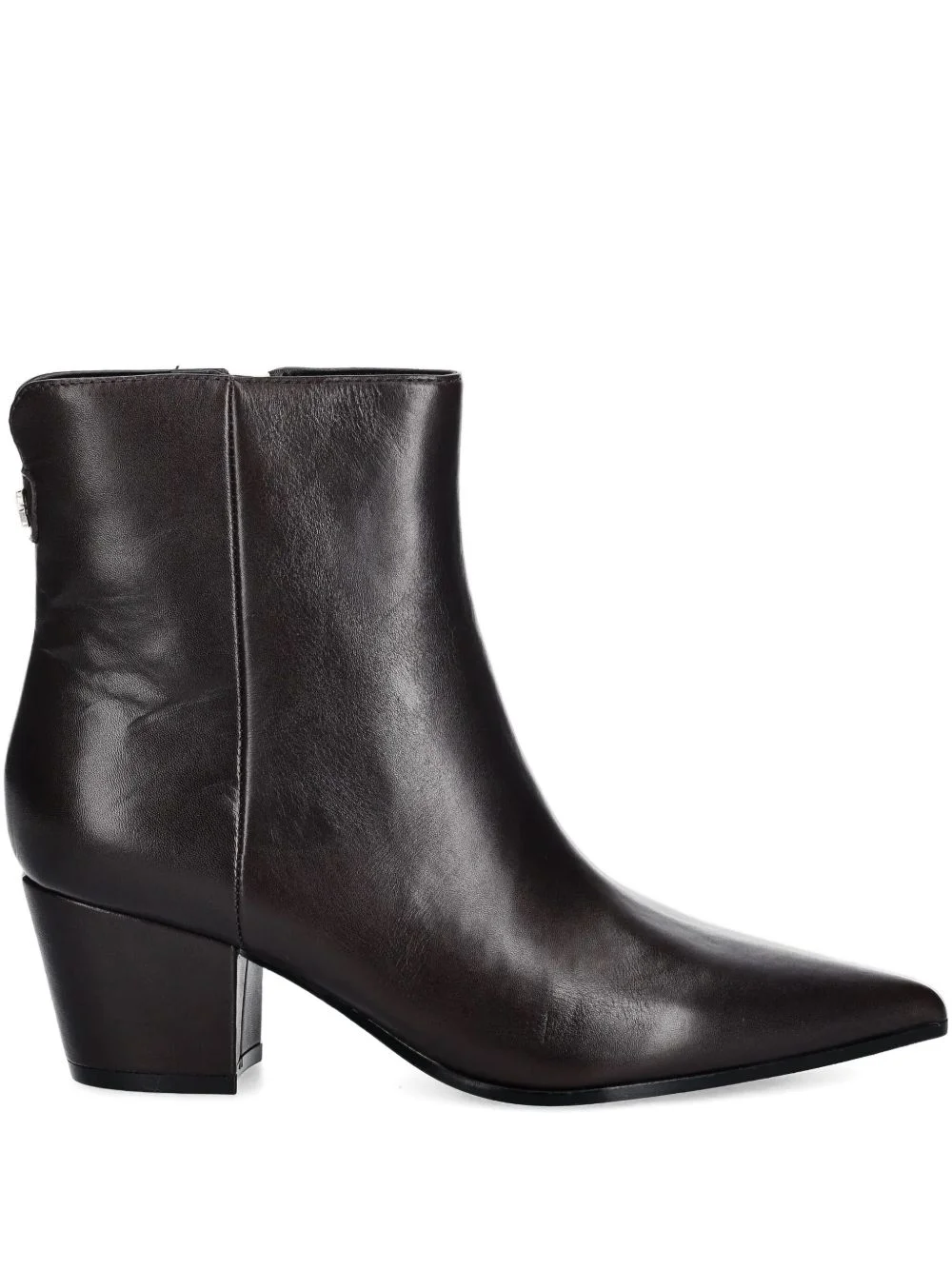 5mm Halisa leather ankle boots Highlights - Brown - Block heel - Pointed toe - Zip fastening - Logo hardware Imported Composition Outer: Leather 100% Sole: Rubber 100% Lining: Polyester 100%, Polyurethane 100% SIZE & FIT Measurement HEEL 1.96 in(5 cm)