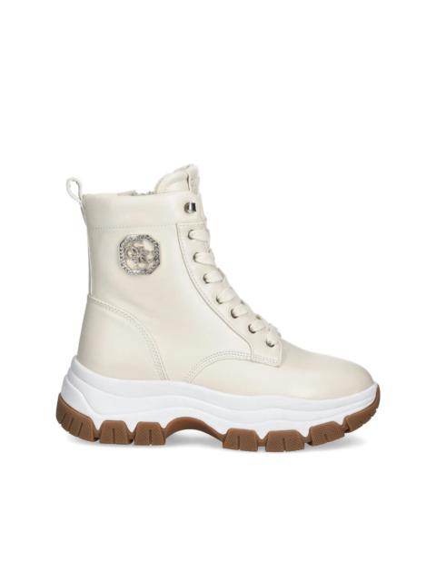 73mm Benzon logo-plaque high-top sneakers Highlights - Cream - Logo plaque - Lace-up fastening - Side zip fastening - Pull tab at the back - Lug rubber sole Imported Composition Outer: Polyurethane 100% Lining: Polyester 50%, Polyurethane 50% Sole: Rubber 100% Washing instructions Read Manufacturer Guidelines