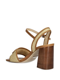 85mm Ganika woven-strap sandals Highlights - Tan - Woven strap detail - Decorative logo embellishment - Block heel - Ankle strap - Open toe Imported Composition Outer: Calf Leather 100%, Fabric 100% Sole: Rubber 100% Lining: Fabric 100% SIZE & FIT Measurement HEEL 3.34 in(8.5 cm)