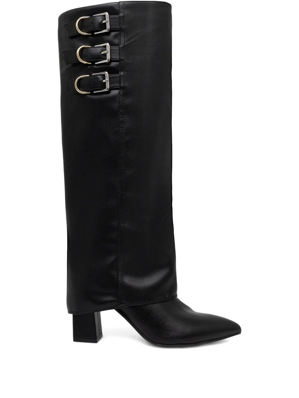 85mm Garica side-buckles boots Highlights - Black - Block heel - Pointed toe - Buckle-strap - Gold-tone hardware - Logo detail Imported Composition Outer: Polyurethane 100% Lining: Polyurethane 100% Sole: Thermoplastic Polyurethane (TPU) 100% SIZE & FIT Measurement HEEL 3.34 in(8.5 cm)