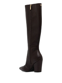 85mm Nariel pointed knee-length boots Highlights - Dark brown - Block heel - Pointed toe - Zip fastening - Knee-high Imported Composition Outer: Leather 100% Lining: Polyester 50%, Polyurethane 50% Sole: Rubber 100% Washing instructions Read Manufacturer Guidelines