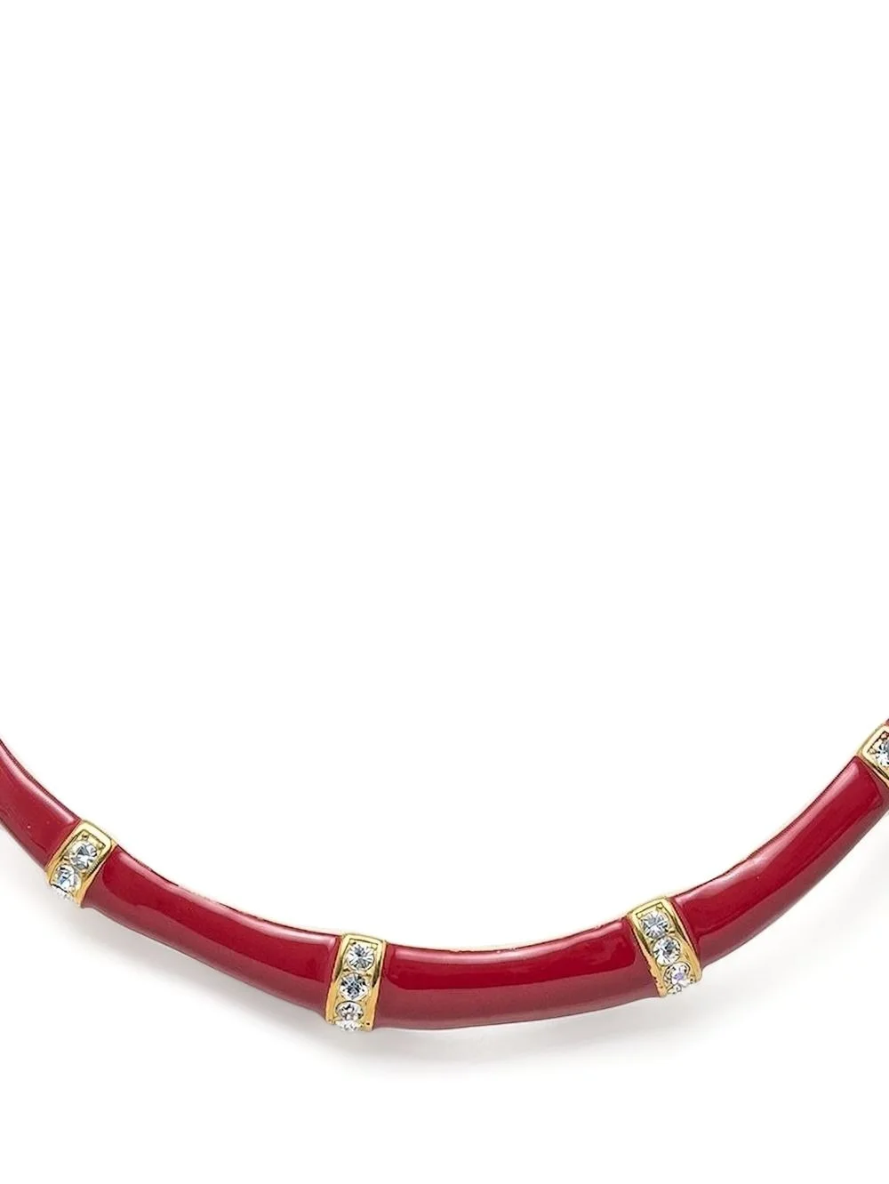 Bamboo necklace Highlights - Red - Gold-tone metal - Crystal embellishments - Flexible fastening Imported