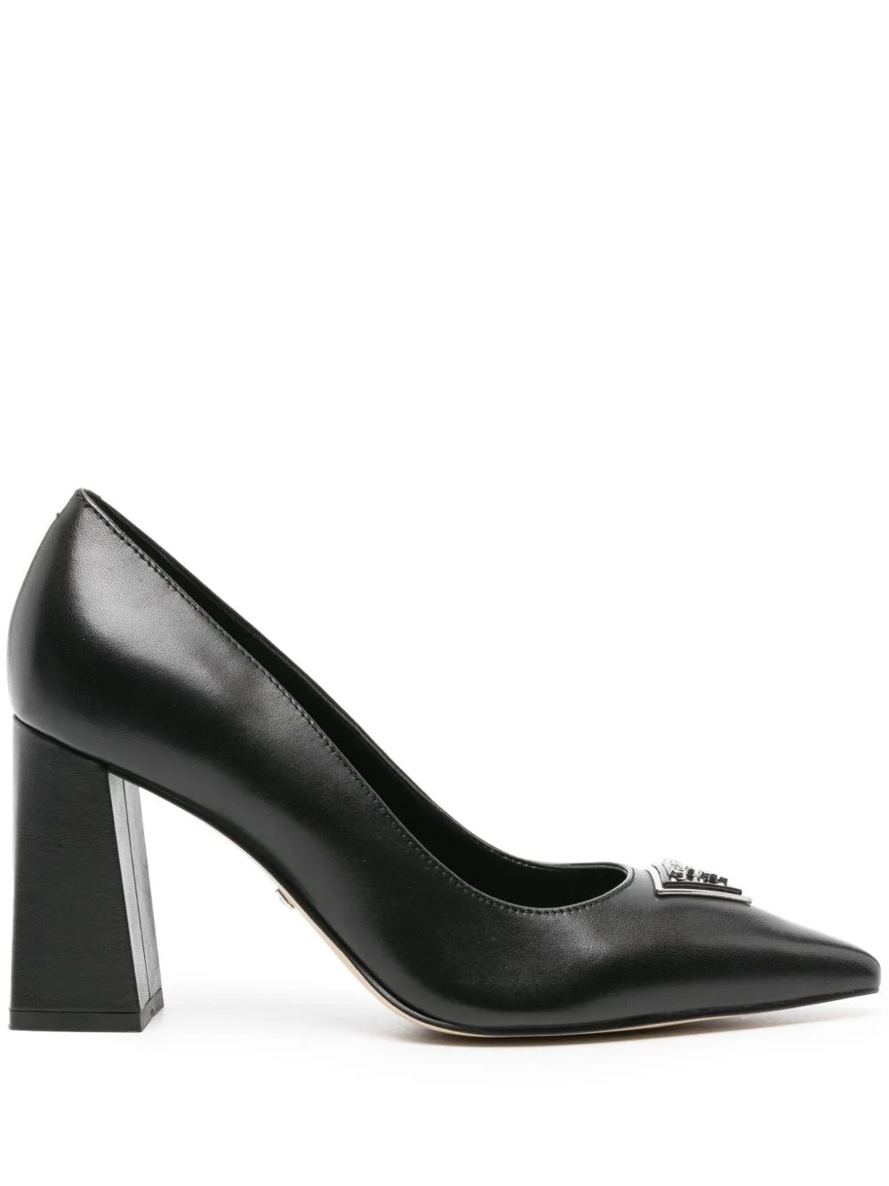 85mm Barson leather pumps Highlights - Black - Calf leather - Silver-tone logo plaque - Slip-on style - Pointed toe - Leather lining - Branded insole - 85mm block heel Imported Composition Leather 100% SIZE & FIT Measurement HEEL 3.34 in(8.5 cm)