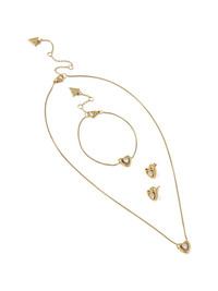 BeLoved heart-pendant necklace set Highlights - Gold-tone - Heart pendant - Chain link - Lobster clasp fastening - Necklace, bracelet and earrings included - These earrings come as a pair. Imported