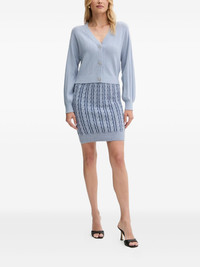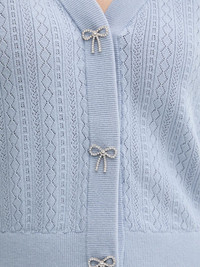 bow-buttons pointelle-knit cardigan Highlights - Light blue - Pointelle knit - V-neck - Long sleeves - Puffed sleeves - Rhinestone bow buttons Imported Composition Viscose 58%, Polyester 42% Washing instructions Read Manufacturer Guidelines