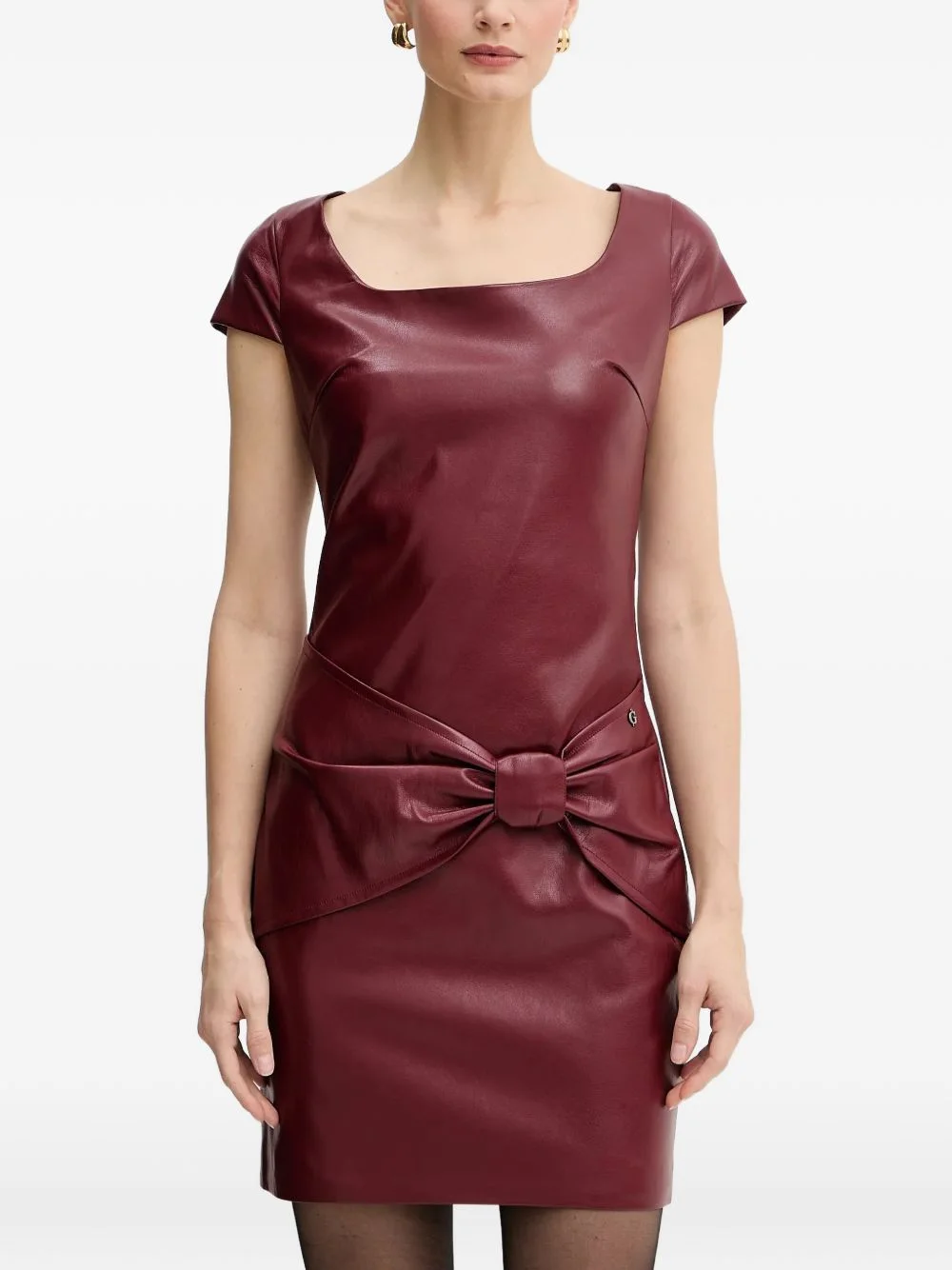 bow squared-neck mini dress Highlights - Claret red - Square neck - Short sleeves - Bow detail - Concealed back zip fastening Imported Composition Lining: Polyurethane 100%, Polyester 97%, Elastane 3% Outer: Polyester 100% Washing instructions Hand Wash