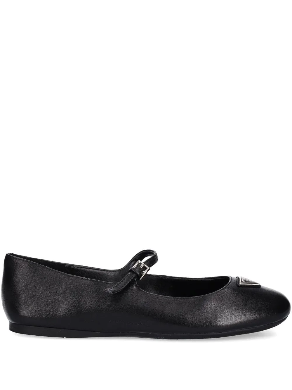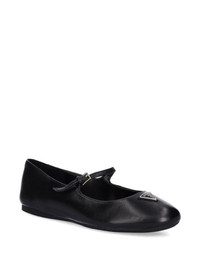 buckle-detail leather ballet flats Highlights - Black - Leather upper - Buckle fastening - Triangular logo-plaque - Almond toe - Flat sole Imported Composition Outer: Calf Leather 100% Lining: Calf Leather 100% Sole: Rubber 100%
