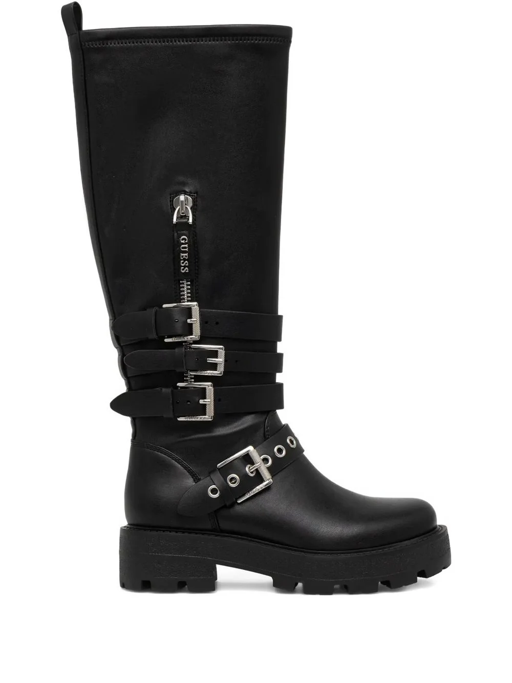 buckle-strap boots Highlights - Black - Buckle-fastening straps - Eyelet detailing - Zip fastening - Lug sole Imported Composition Outer: Calf Leather 100% Sole: Rubber 100% Lining: Polyurethane 100%