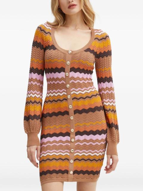 button chevron-pattern midi dress Highlights - Grey - Chevron pattern - Button fastening - Long sleeves - Round neck - Ribbed cuffs Imported Composition Polyester 60%, Viscose 40% Washing instructions Hand Wash