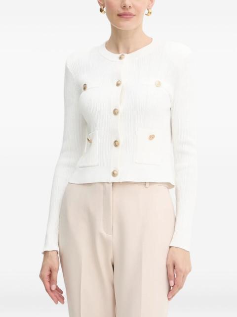 button-fastening cardigan Highlights - Light beige - Ribbed knit - Round neck - Button fastening - Two front pockets - Gold-tone buttons Imported Composition Viscose 63%, Polyamide 37% Washing instructions Read Manufacturer Guidelines