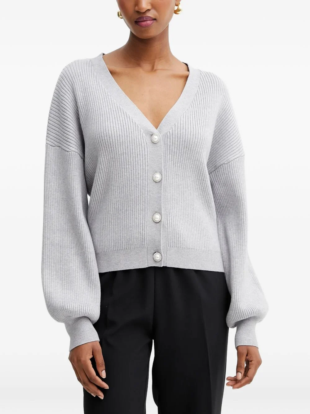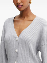 button-fastening cardigan Highlights - Light grey - Ribbed knit - V-neck - Pearl button - Long sleeves Imported Composition Fabric 100% Washing instructions Read Manufacturer Guidelines