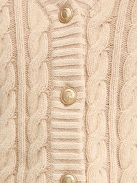 button-up cable-knit cardigan Highlights - Beige - Cable knit - V-neck - Front button fastening - Faux-pocket details - Ribbed hem Imported Composition Wool 48%, Polyester 34%, Acrylic 18% Washing instructions Read Manufacturer Guidelines