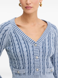 button-up cable-knit cardigan Highlights - Light blue - Cable knit - Front button fastening - V-neck - Ribbed trim Imported Composition Wool 48%, Acrylic 18%, Polyester 18% Washing instructions Read Manufacturer Guidelines