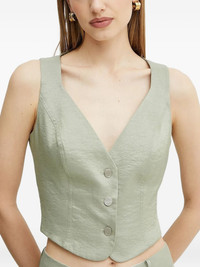 button vest Highlights - Green - Sleeveless design - V-neck - Cropped length - Button fastening Imported Composition Fabric 100% Washing instructions Read Manufacturer Guidelines