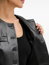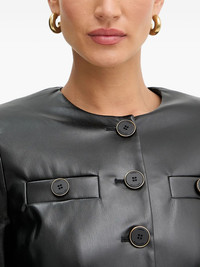 buttoned-detail jacket Highlights - Black - Button fastening - Long sleeves - Round neck - Welt pockets Imported Composition Outer: Polyurethane 100%, Polyester 96%, Elastane 4% Lining: Polyester 100% Washing instructions Hand Wash