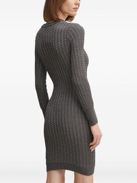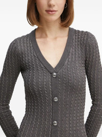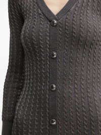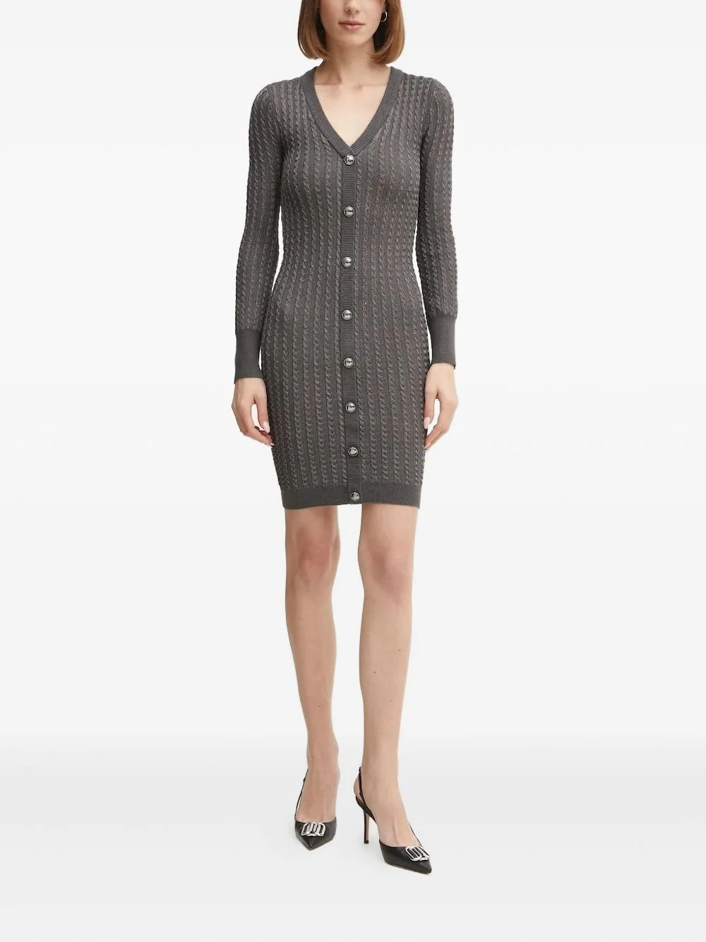 cable-knit button-front midi dress Highlights - Charcoal grey - Cable knit - V-neck - Long sleeves - Button front Imported Composition Viscose 65%, Metallised Fibres 16%, Polyester 12%, Polyamide 7% Washing instructions Read Manufacturer Guidelines