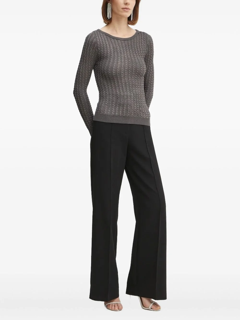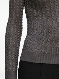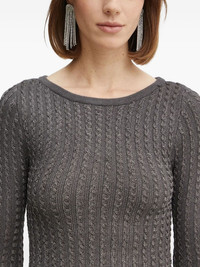 cable-knit metallic-threading sweater Highlights - Grey - Metallic thread - Cable knit - Round neck - Long sleeves Imported Composition Viscose 65%, Metallised Fibres 16%, Polyester 12%, Polyamide 7% Washing instructions Read Manufacturer Guidelines