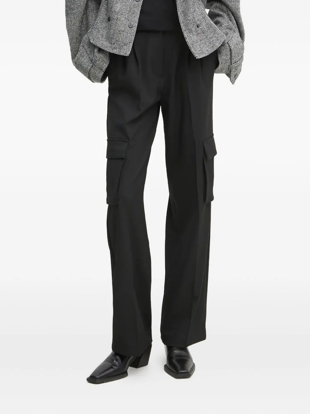 cargo trousers Highlights - Black - Pleated front - Cargo pockets - Straight leg - Concealed fastening Imported Composition Polyester 96%, Elastane 4% Washing instructions Read Manufacturer Guidelines