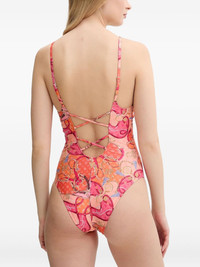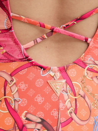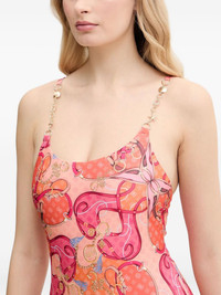 chain-embellished print swimsuit Highlights - Coral and pink - Chain straps - All-over print - Clasp fastening - Adjustable shoulder straps with logo chains - Be mindful to try on swimwear over your own garments. Imported Composition Polyester 85%, Elastane 15% Washing instructions Read Manufacturer Guidelines