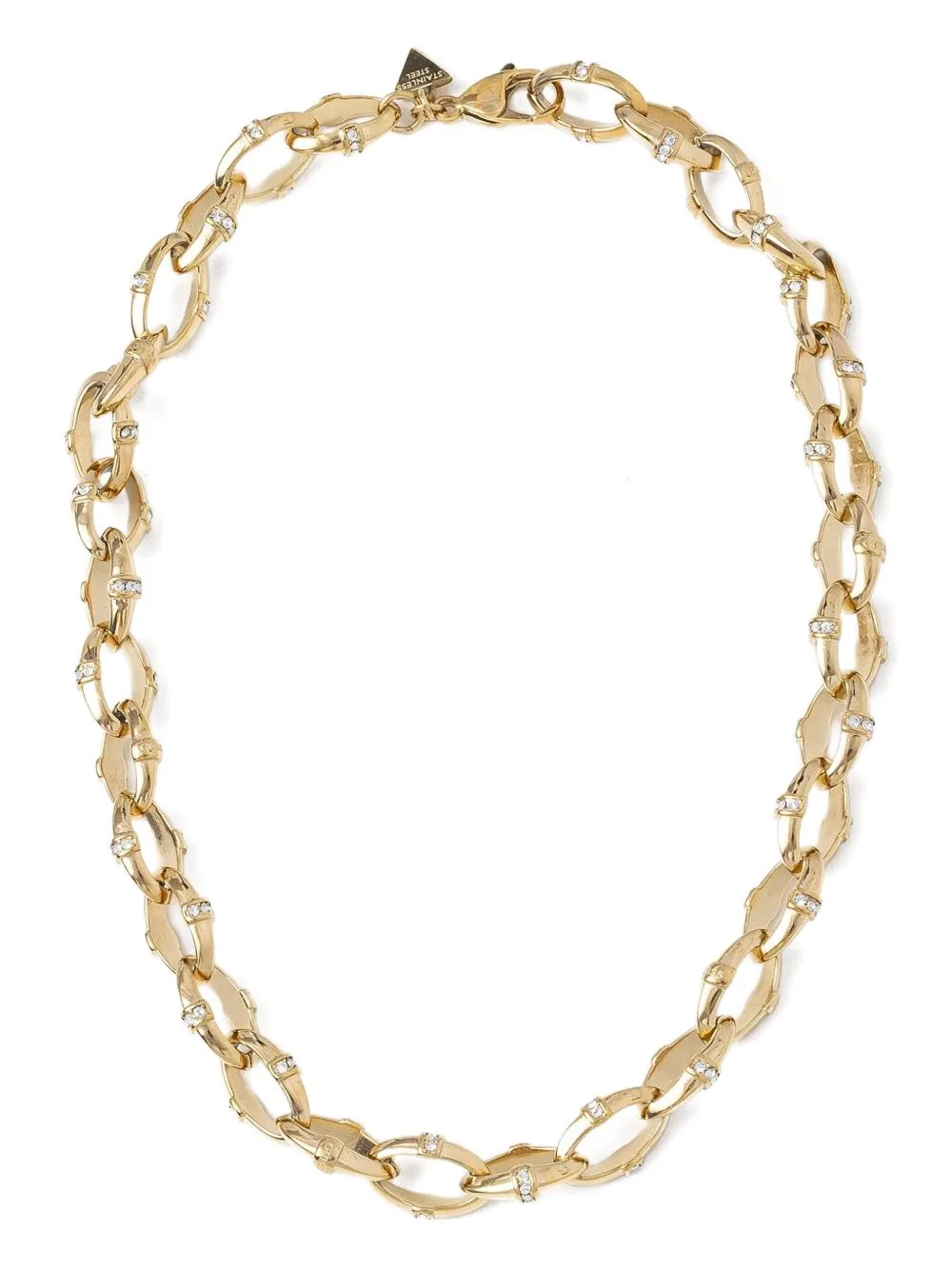 crystal-embellished chain necklace Highlights - Gold-tone - Chain link - Crystal embellishment - Oval-shaped links - Polished finish - Lobster claw fastening Imported