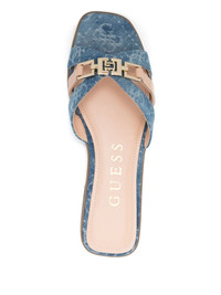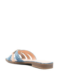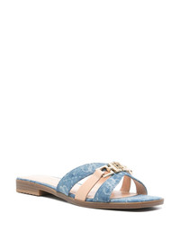 denim slides Highlights - Cerulean blue - Applique logo - Branded footbed - Multi-way strap design - Stacked heel Imported Composition Outer: Leather 100%, Fabric 100% Sole: Rubber 100% Lining: Rubber 100%