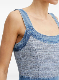 denim-trimmed tweed mini dress Highlights - Light blue - Tweed texture - Denim straps - Square neck - Sleeveless - Zip fastening Imported Composition Cotton 50%, Polyester 35%, Metallised Fibres 15% Washing instructions Read Manufacturer Guidelines