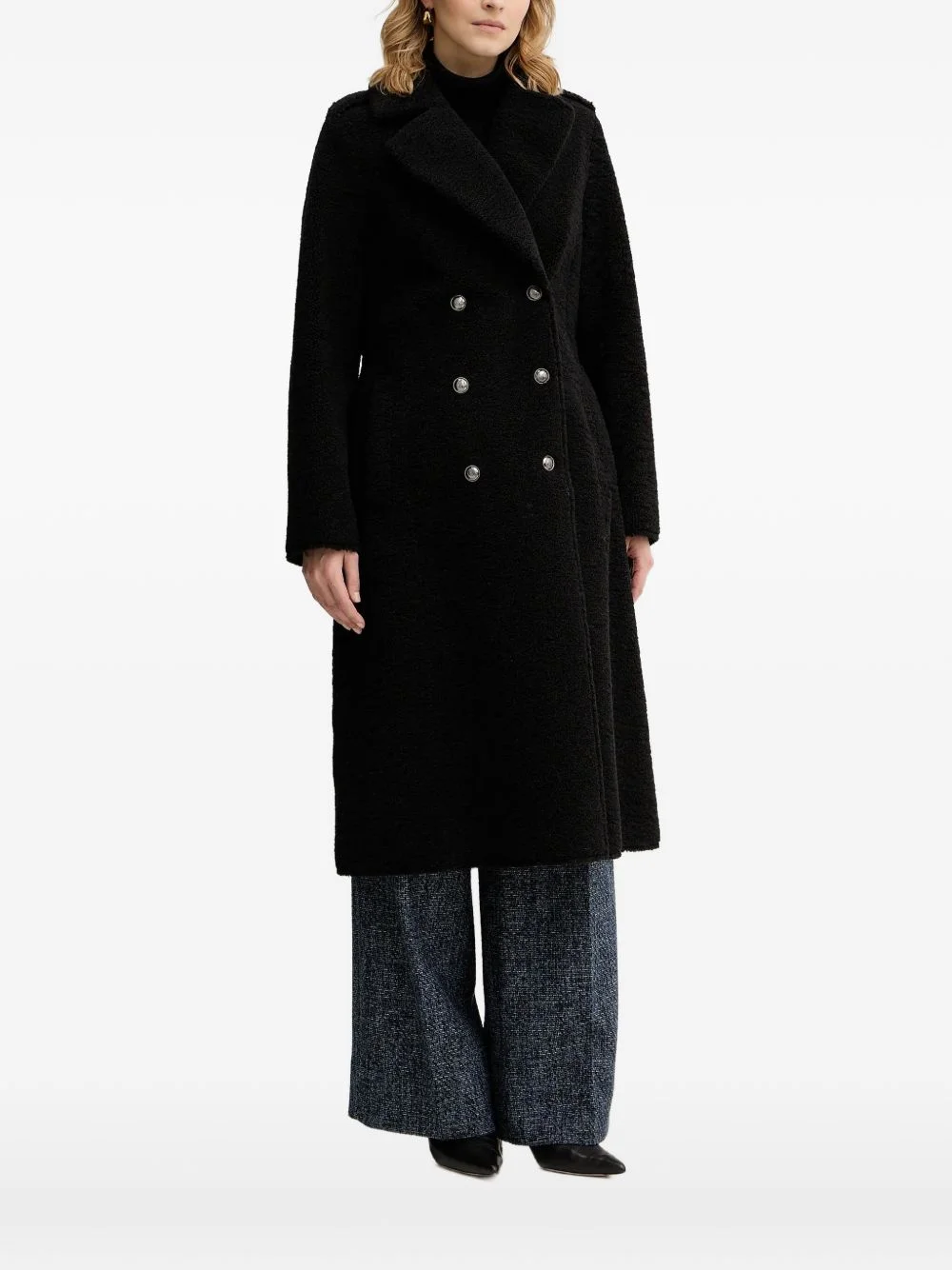 double-breasted faux-fur coat Highlights - Black - Faux-fur design - Double-breasted - Button fastening - Side flap pockets - Notched lapels Imported Composition Polyester 100% Washing instructions Hand Wash