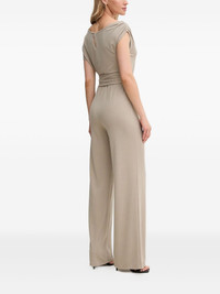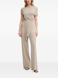 draped-neckline belted jumpsuit Highlights - Light beige - Draped neckline - Short sleeves - Self-tie belt Imported Composition Viscose 70%, Polyester 26%, Elastane 4% Washing instructions Read Manufacturer Guidelines