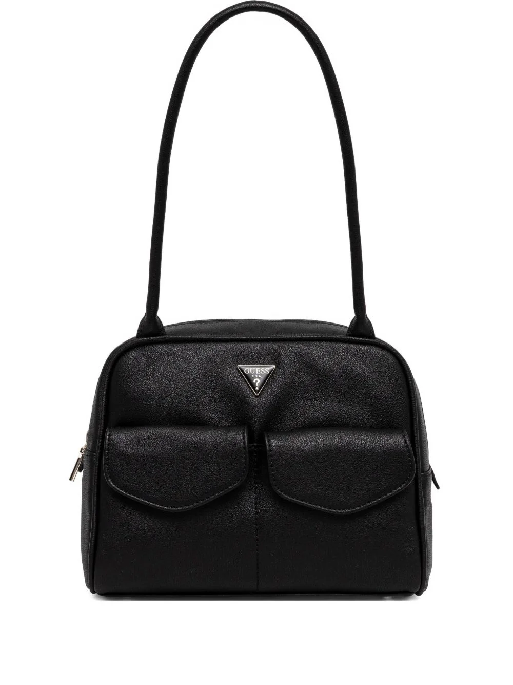 dual-pocket faux-leather shoulder bag Highlights - Black - Dual front pockets - Top zip fastening - Two rolled shoulder straps - Logo plaque detail Imported Composition Outer: Polyurethane 100%, Polyester 100% SIZE & FIT Measurement DEPTH 3.93 in(10 cm) HEIGHT 7.87 in(20 cm) WIDTH 9.44 in(24 cm)