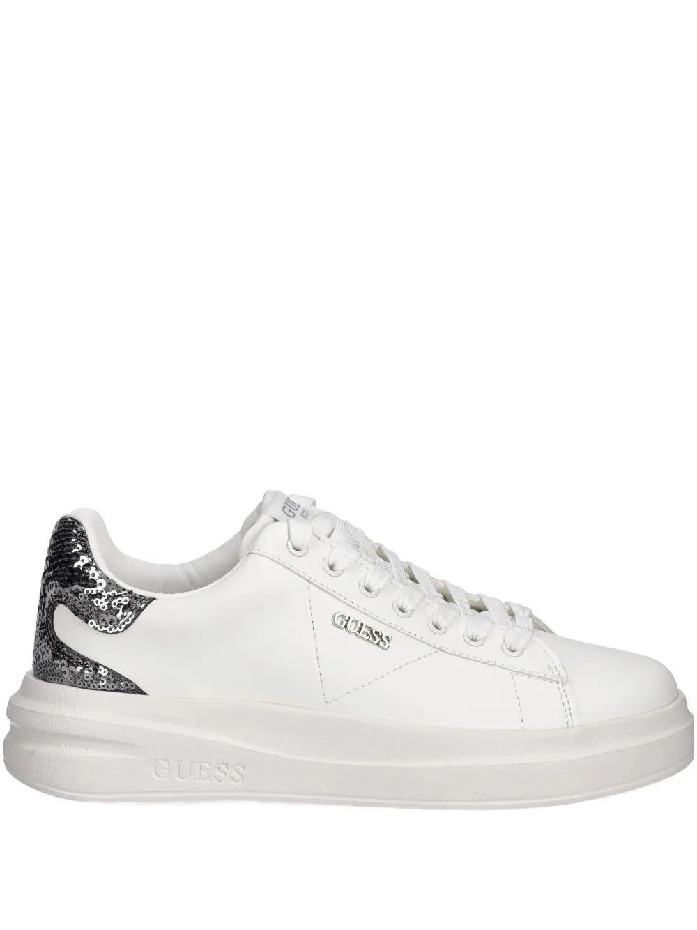 Elbina leather sequin-heel sneakers Highlights - White - Sequin embellishment - Logo lettering - Lace-up fastening - Round toe - Platform sole Imported Composition Outer: Leather 100% Lining: Cotton 100% Sole: Rubber 100%