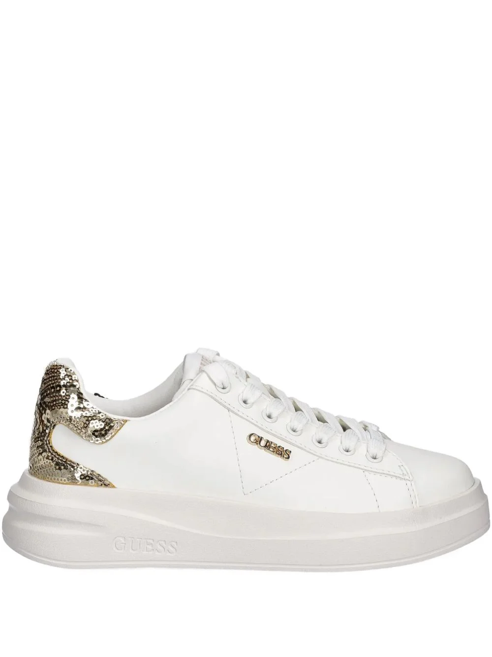Elbina sequin-heel sneakers Highlights - White - Sequin embellishment at the heel - Logo lettering - Lace-up fastening - Platform sole - Round toe Imported Composition Outer: Leather 100% Lining: Cotton 100%, Polyurethane 100% Sole: Rubber 100%