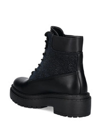 embellished lace-up boots Highlights - Black - Embellished-logo detail - Lace-up-fastening - Lug sole - Round-toe - Block -heel Imported Composition Outer: Fabric 100%, Polyurethane 100% Lining: Fabric 100% Sole: Rubber 100%