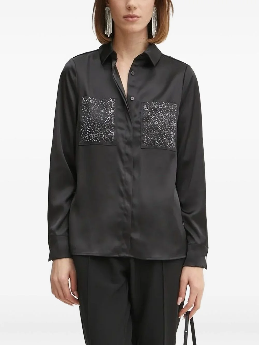 embellished-pocket shirt Highlights - Black - Long sleeves - Button fastening - Embellished chest-pocket detailing Imported Composition Polyester 97%, Elastane 3% Washing instructions Read Manufacturer Guidelines