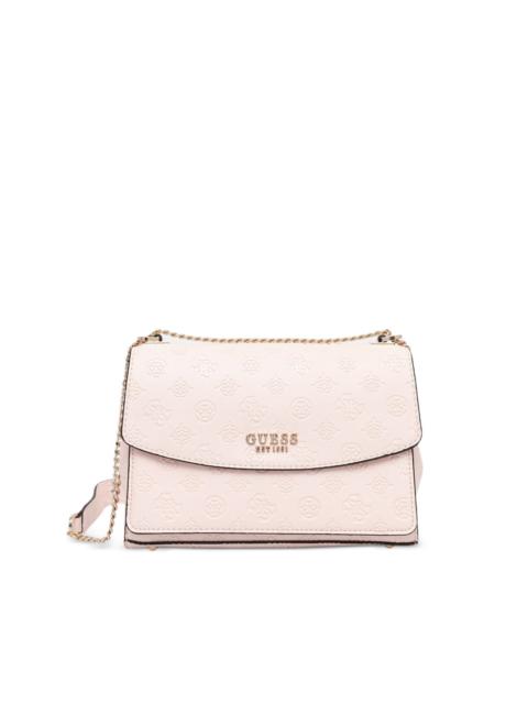 embossed chain satchel Highlights - Signature - Embossed design - Chain detail - Foldover top - Gold-tone hardware - Shoulder strap Imported Composition Calf Leather 100%