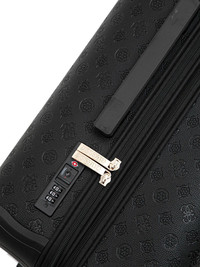 embossed logo luggage Highlights - Black - Embossed logo pattern - Top handle - Four wheels - Combination lock - Retractable top handle Imported Composition Outer: Polyurethane 100%