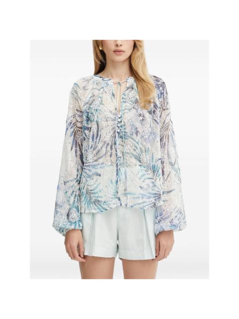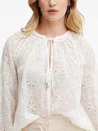 embroidered tie-neck blouse Highlights - White - Tie neck - Long balloon sleeves Imported Composition Polyester 100% Washing instructions Read Manufacturer Guidelines