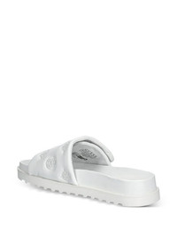 Fabio embroidered flat sandals Highlights - White - Embroidered logo design - Wide strap - Flat sole - Ridged outsole Imported Composition Sole: Thermoplastic Polyurethane (TPU) 100% Outer: Polyurethane 100% Lining: Fabric 100%