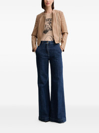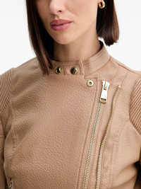 faux-leather biker jacket Highlights - Light brown - Zip fastening - Ribbed detail - Round neck - Gold-tone hardware - Buckle detail Imported Composition Lining: Polyester 95%, Elastane 5% Outer: Polyurethane 100% Washing instructions Hand Wash