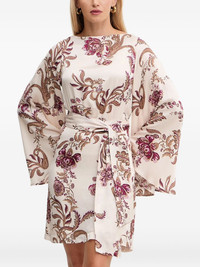 floral-print tie-fastening mini dress Highlights - Off white - Floral print - Tie detail - Long sleeves - Round neck - Back button fastening Imported Composition Outer: EcoVero Viscose (LENZING) 100% Lining: Polyester 100% Washing instructions Machine Wash