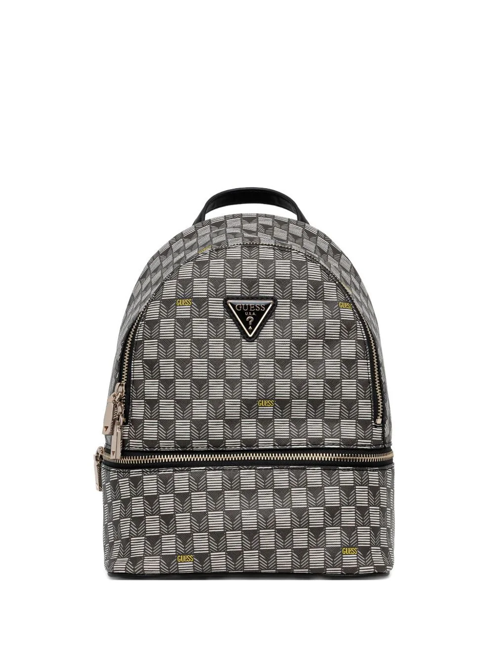 Follie geometric-pattern zip backpack Highlights - Grey and black - Geometric pattern - Top handle - Adjustable shoulder straps - Zip fastening - Logo plaque Imported Composition Outer: Polyurethane 100% SIZE & FIT Measurement DEPTH 5.51 in(14 cm) HEIGHT 11.02 in(28 cm) WIDTH 8.66 in(22 cm)