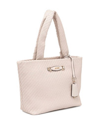 Francy woven tote bag Highlights - Light beige - Woven texture - Detachable logo tag - Metallic logo detail - Twin top handles Imported Composition Outer: Polyurethane 100% Lining: Polyester 80%, Cotton 20% SIZE & FIT Measurement DEPTH 4.33 in(11 cm) HEIGHT 11.02 in(28 cm) WIDTH 12.59 in(32 cm)