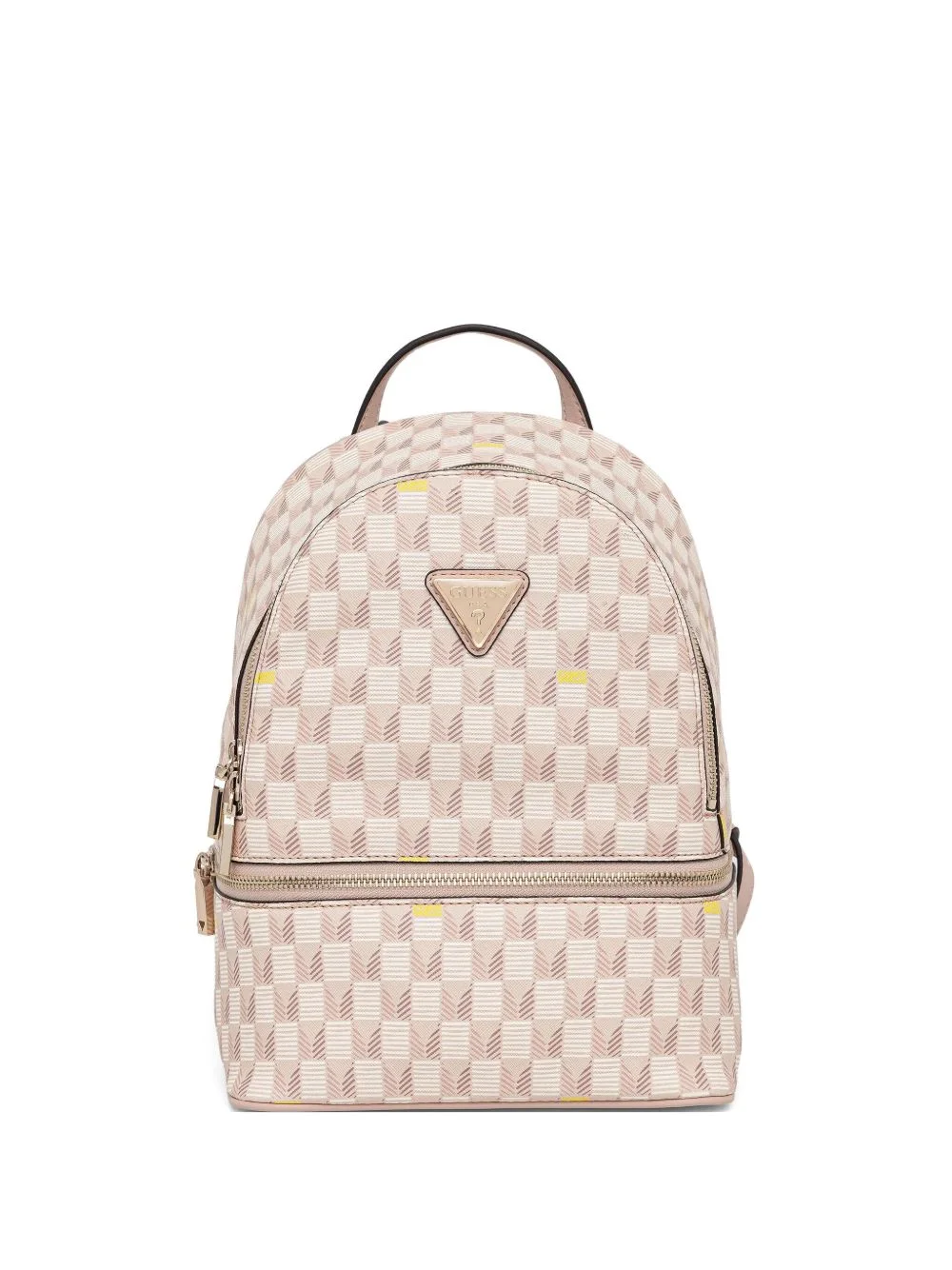 geometric-pattern backpack Highlights - Beige - Geometric pattern - Triangle logo plaque - Top handle - Adjustable shoulder straps - Zip fastening Imported Composition Outer: Polyurethane 100% SIZE & FIT Measurement DEPTH 5.51 in(14 cm) HEIGHT 11.02 in(28 cm) WIDTH 8.66 in(22 cm)