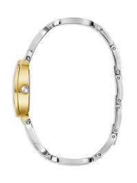 Gia 22mm Highlights - 22mm - Gold-tone - Asymmetric face - Mineral glass - Baton hands - Screw-down crown - Crystal-encrusted bezel - Adjustable link bracelet - Folding clasp - This item comes with a standard one-year warranty from the boutique. Imported