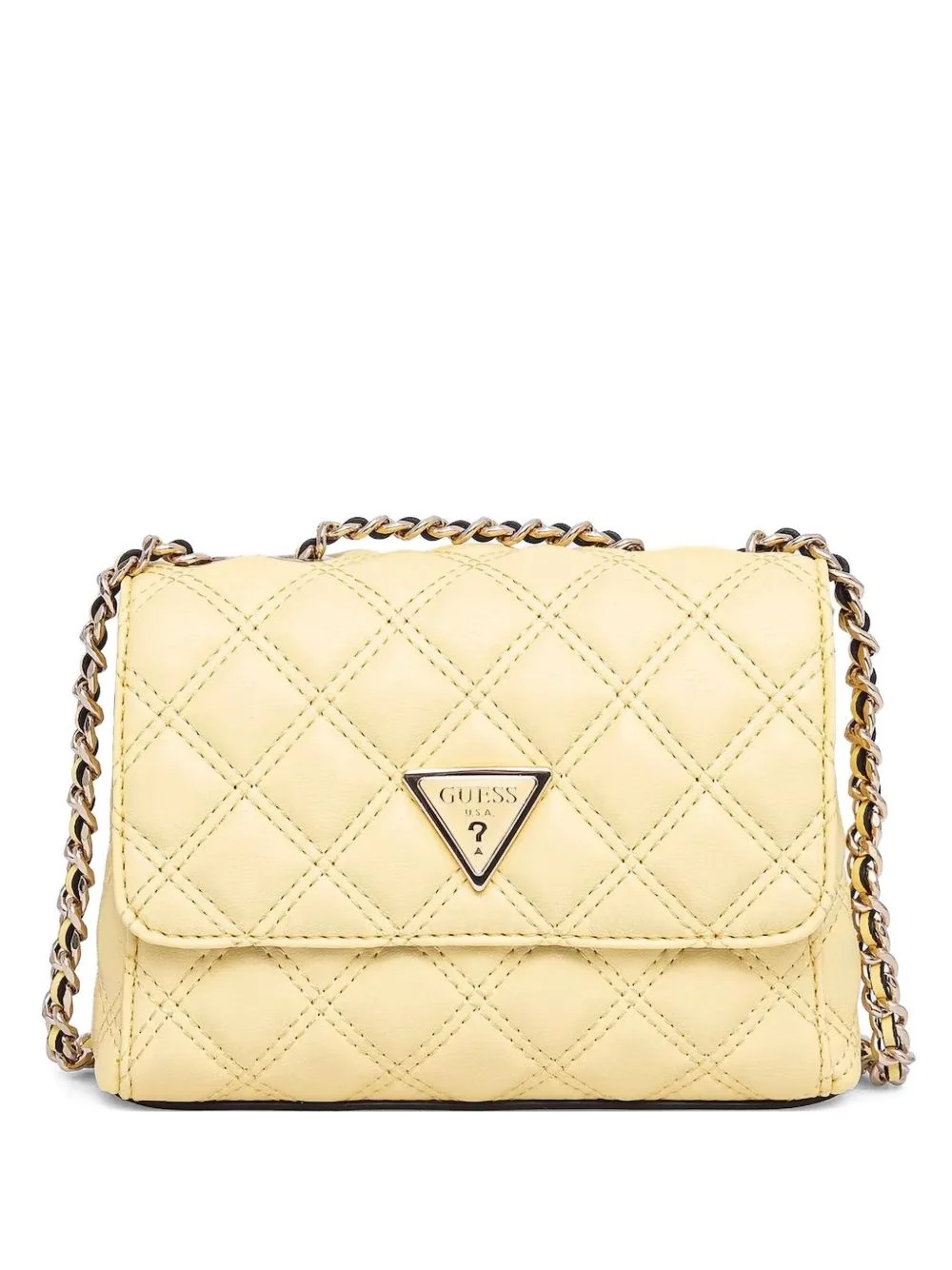 Giully quilted cross body bag Highlights - Pale yellow - Diamond-quilted design - Chain shoulder strap - Logo plaque - Flap closure Imported Composition Outer: Polyurethane 100% SIZE & FIT Measurement DEPTH 1.96 in(5 cm) HEIGHT 4.72 in(12 cm) WIDTH 6.69 in(17 cm)