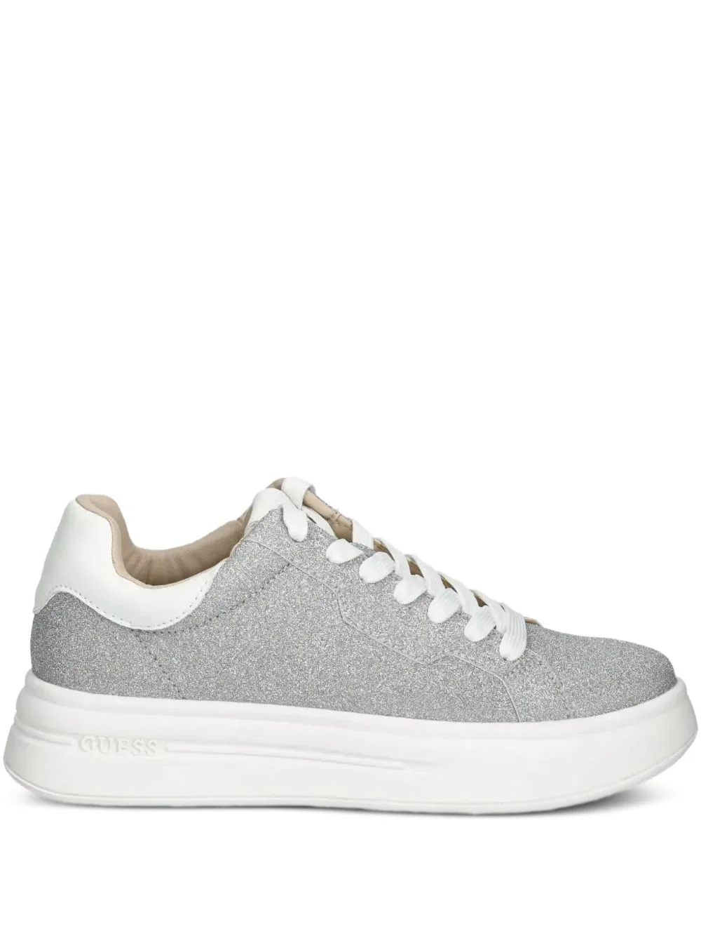 glittered sneakers Highlights - Silver - Lace-up to the front - Padded ankle - Flat sole - Logo detailing Imported Composition Outer: Polyurethane 100%, Calf Leather 100% Lining: Polyurethane 100% Sole: Rubber 100%